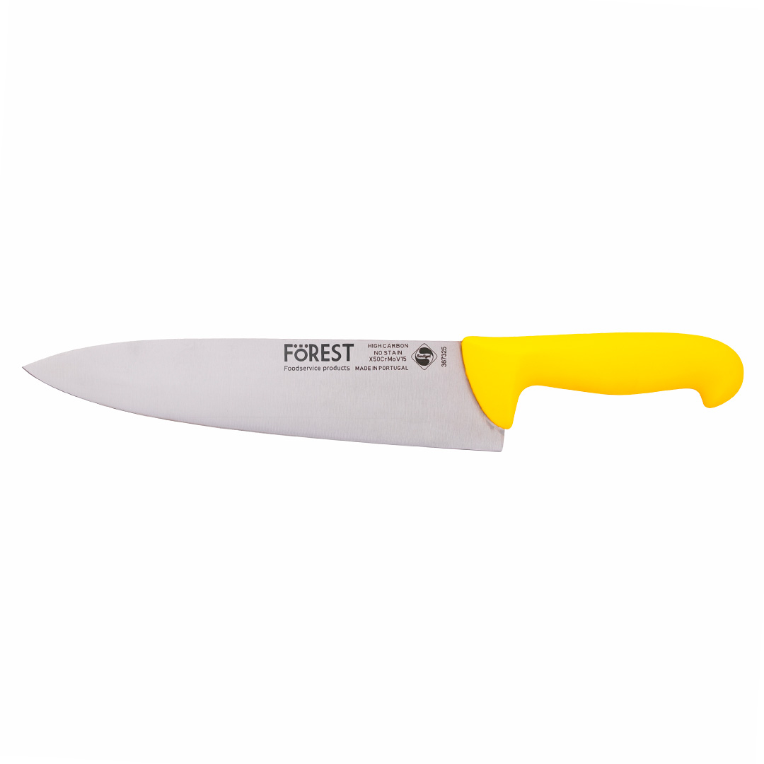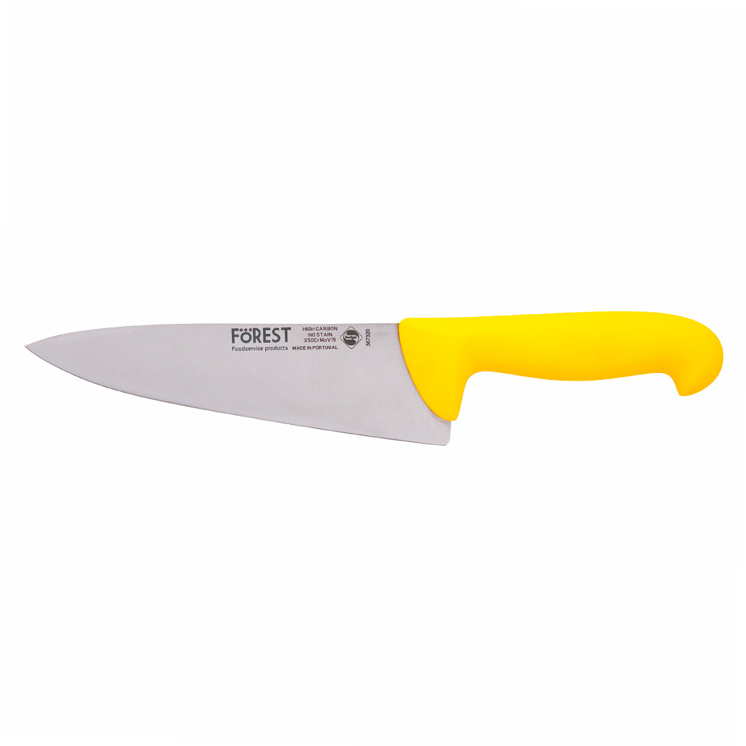 Призначення: Ніж кухарськийМатеріал: Нержавіюча стальКолір: Жовтий