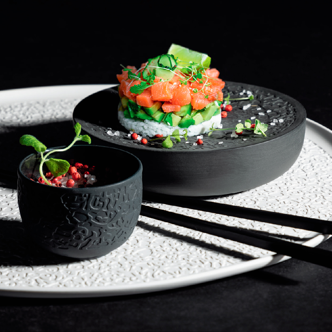 Блюдо для подачі 16 см колір чорний серія “Nori relief” (без глазурування)