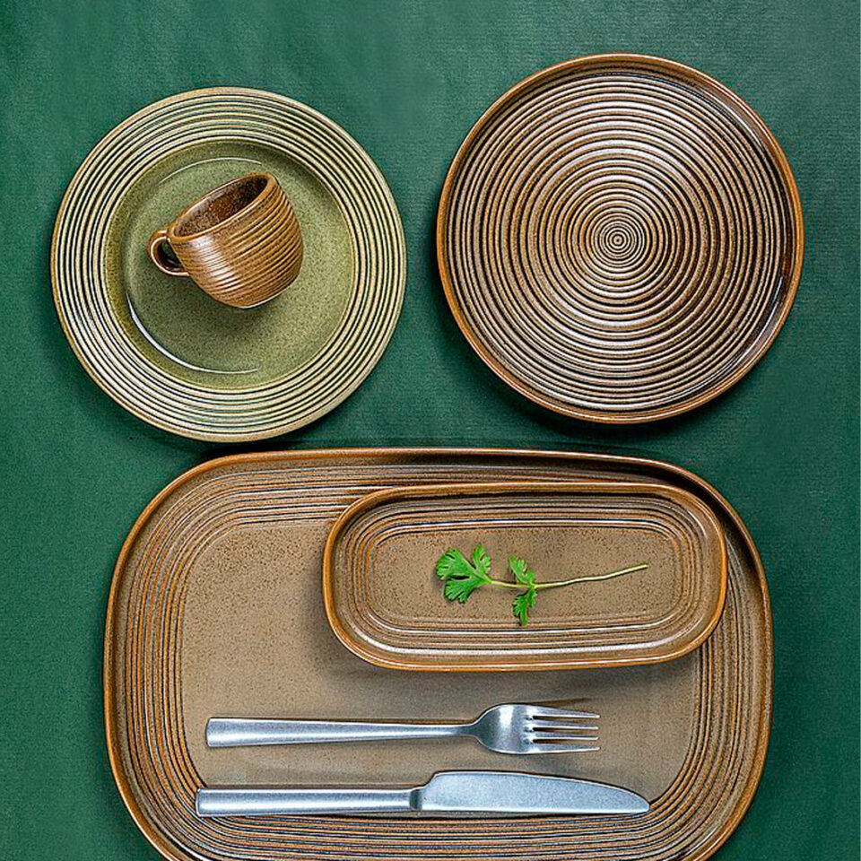 Тарілка кругла рельєфна з бортом 90° 27 см, серія “Helix Bamboo”