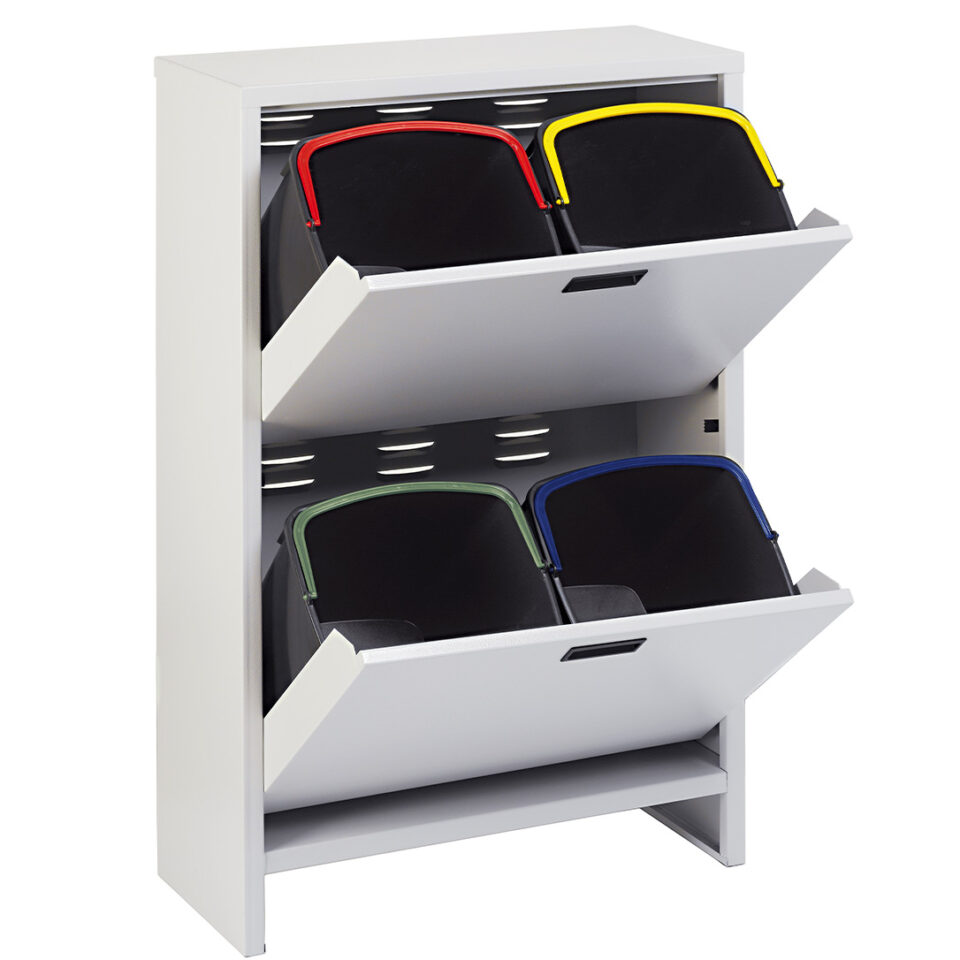 Вентиляційна шафа для сортування сміття з 4 відрами 65x25x100 см